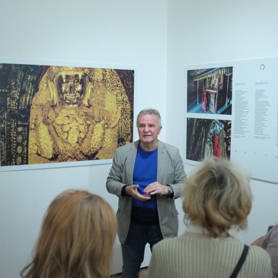 Prezentowana od 5 sierpnia br. ekspozycja zawierała utrwalone na zdjęciach miejsca kultu, rytuały oraz ciała, twarze i dłonie bohaterów, które stały się fotograficznym komentarzem twórcy do poetyckich tłumaczeń fragmentów hinduskich Upaniszad, buddyjskich sutr, tajemniczej Tao Te Ching taoizmu, Koranu, hymnów z księgi Guru Granth Sahib sikhów, żydowskich ksiąg mądrościowych Biblii hebrajskiej oraz przypowieści Nowego Testamentu.