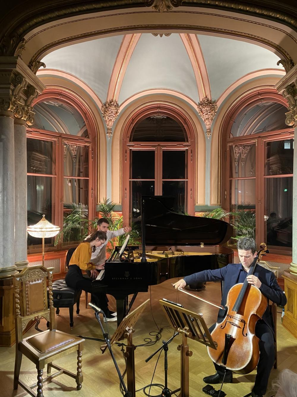 W sobotę (23 listopada) w Willi Lentza odbył się kolejny koncert organizowany w ramach cyklu prezentującego wszystkie dzieła najwybitniejszego polskiego kompozytora i pianisty. Tym razem francuscy muzycy z PAVONE ENSEMBLE (skrzypek Elie Hackel, wiolonczelista Thibaut Reznicek oraz pianistka Sarah Zajtmann), przedstawili wybrane pieśni Fryderyka Chopina oraz Jego utwory kameralne na skrzypce, wiolonczelę i fortepian.