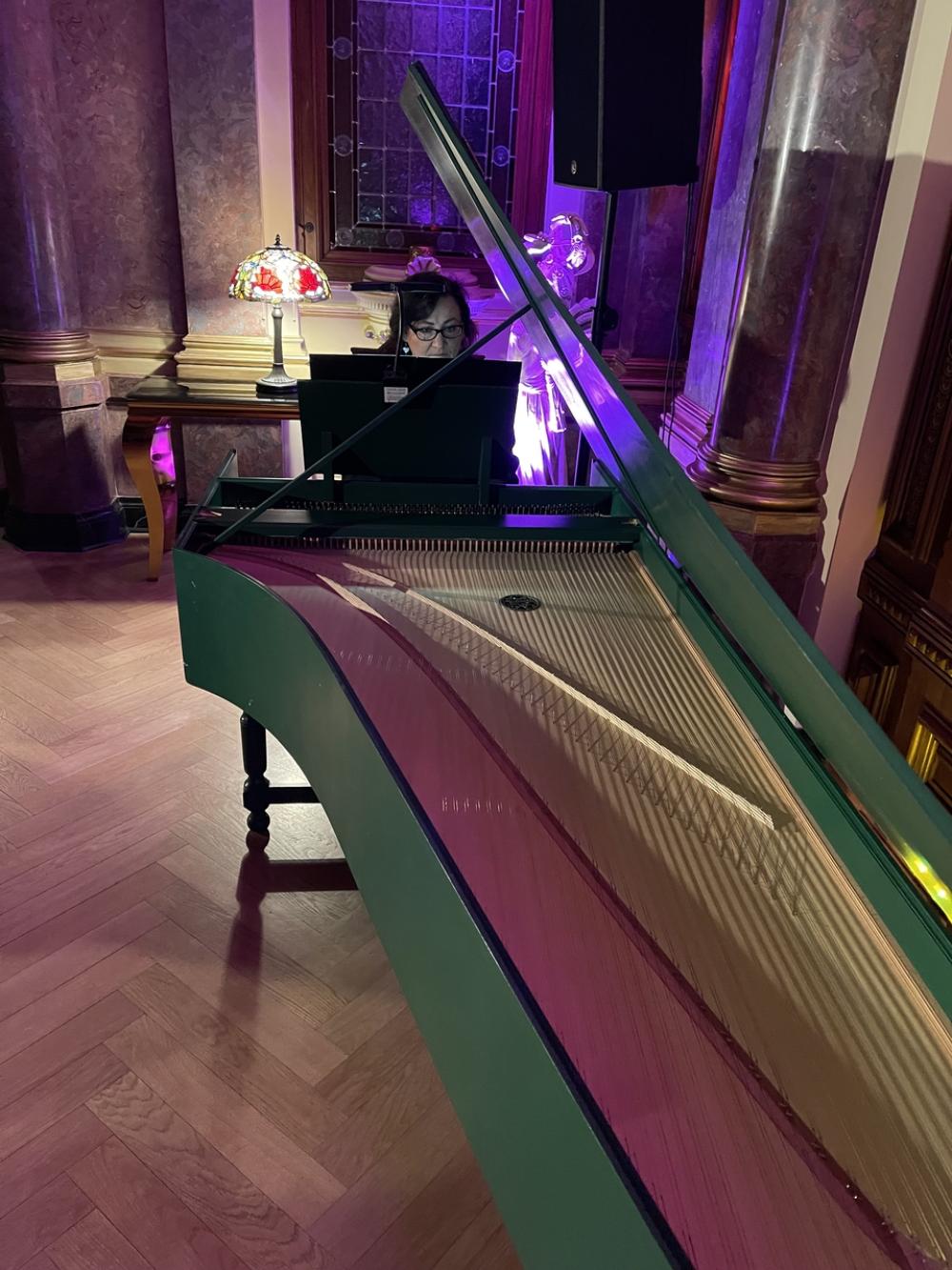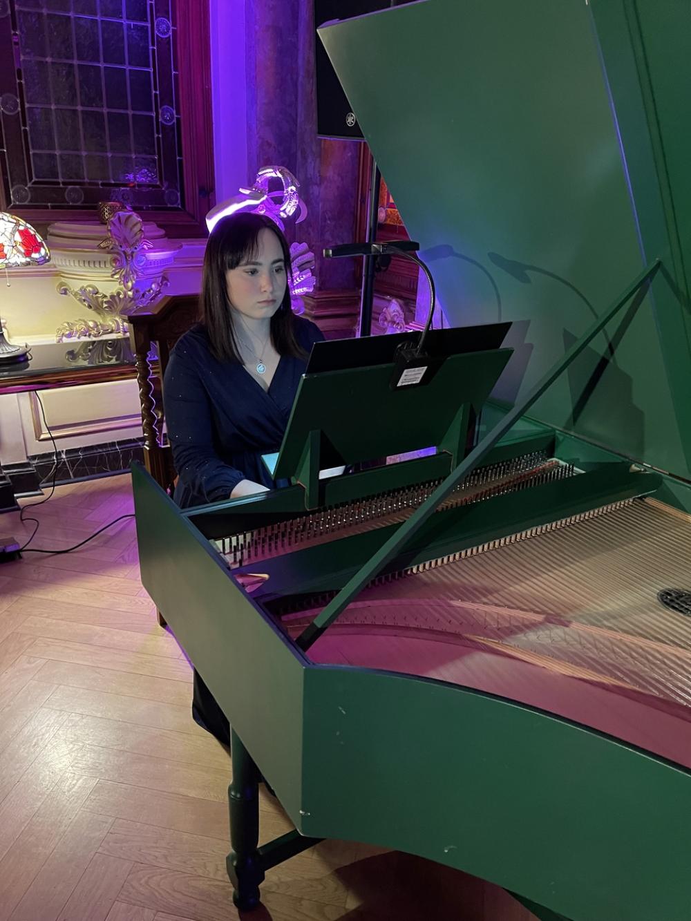 O godzinie 18:30 publiczność miała okazję wysłuchać koncertu w wykonaniu Urszuli Stawickiej oraz jej utalentowanych uczniów. Repertuar, pełen klasycznych utworów na klawesyn, zachwycił słuchaczy subtelnością brzmienia i kunsztem wykonania.