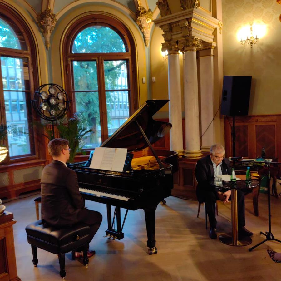 W poniedziałek i we wtorek (20 i 21.05.2024) z Gośćmi Willi Lentza spotkał się Antoni Libera – pisarz, tłumacz literatury, krytyk literacki i reżyser teatralny. Wieczór uświetnił także pianista Adam Tomaszewski.