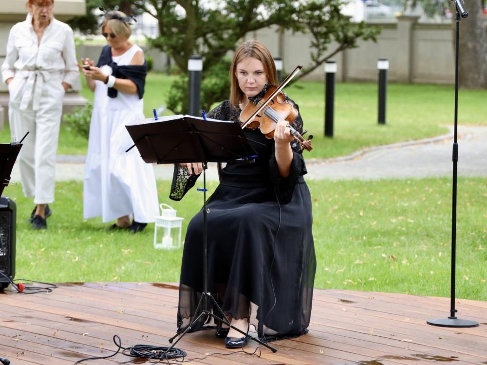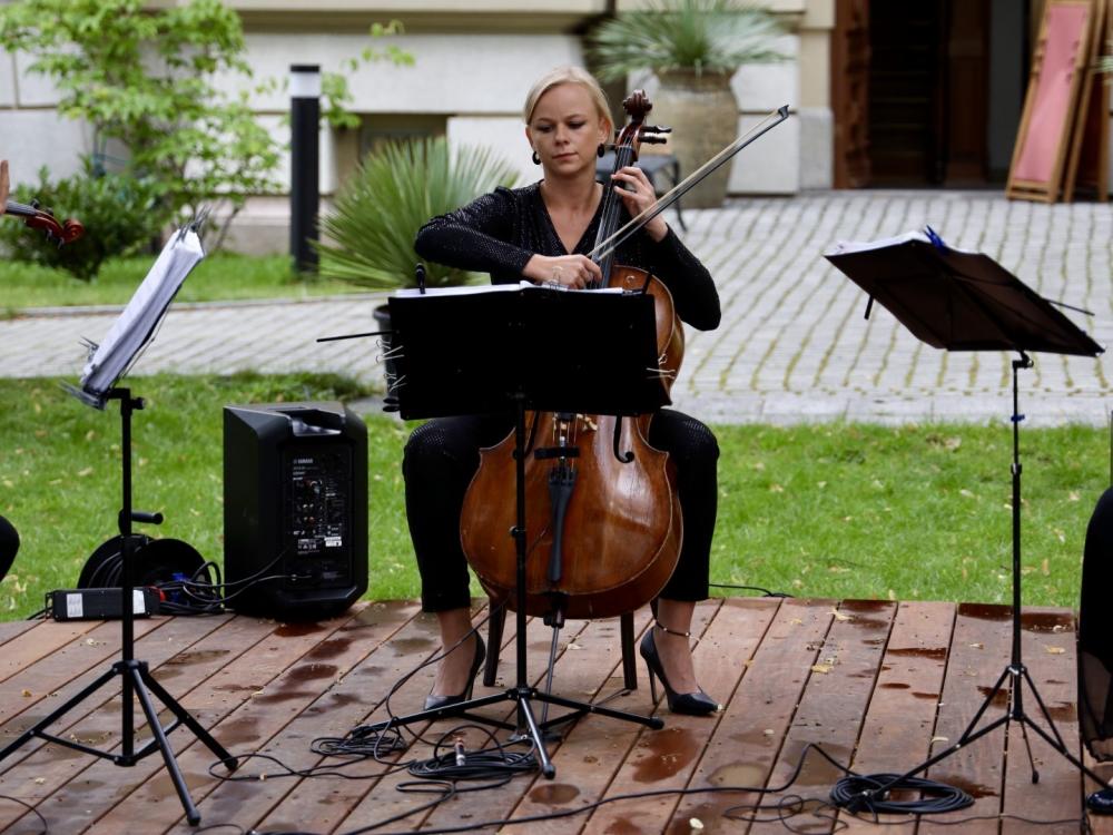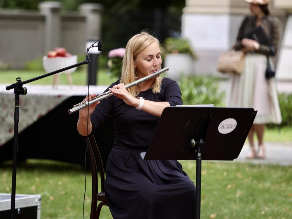 Śniadanie na trawie rozpoczęło się o godzinie 11:00, a ogrodowym dysputom towarzyszyła m.in. muzyka Ludwiga van Beethovena, Franza Lehara, Pietro Mascagniego, Wolfganga Amadeusza Mozarta i Johanna Straussa. Muzyczne perełki pięknie brzmiały w interpretacji dwóch tercetów w składzie: Misza Tsebriy (skrzypce), Anna Zhavoronkova (altówka) i Katarzyna Kupny (wiolonczela) oraz Katarzyna Krajka (flet), Damian Krajka (altówka) i Maja Nizińska (wiolonczela).
