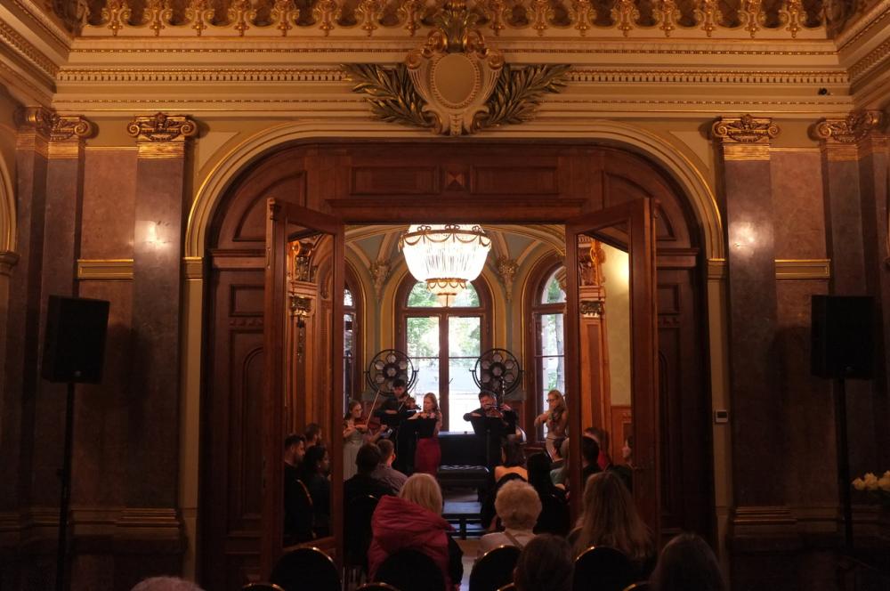 Otwierający spotkanie multimedialny wykład zatytułowany „Rejs po Luzytanii. Ze złotych kart Portugalii”, przybliżył stałym bywalcom szczecińskiej rezydencji przy al. Wojska Polskiego 84 mało znane wątki ciekawej historii Repúblici Portuguesa. W muzycznym programie wieczoru znalazły się natomiast utwory portugalskich kompozytorów Joly’ego Bragi Santosa i Luísa Tinoca. Publiczność gromkimi brawami przyjęła interpretację Koncertu nr 4 A-dur, BWV 1055 Johanna Sebastiana Bacha na klawesyn i orkiestrę smyczkową, opracowany przez João Barradasa na akordeon i orkiestrę smyczkową.